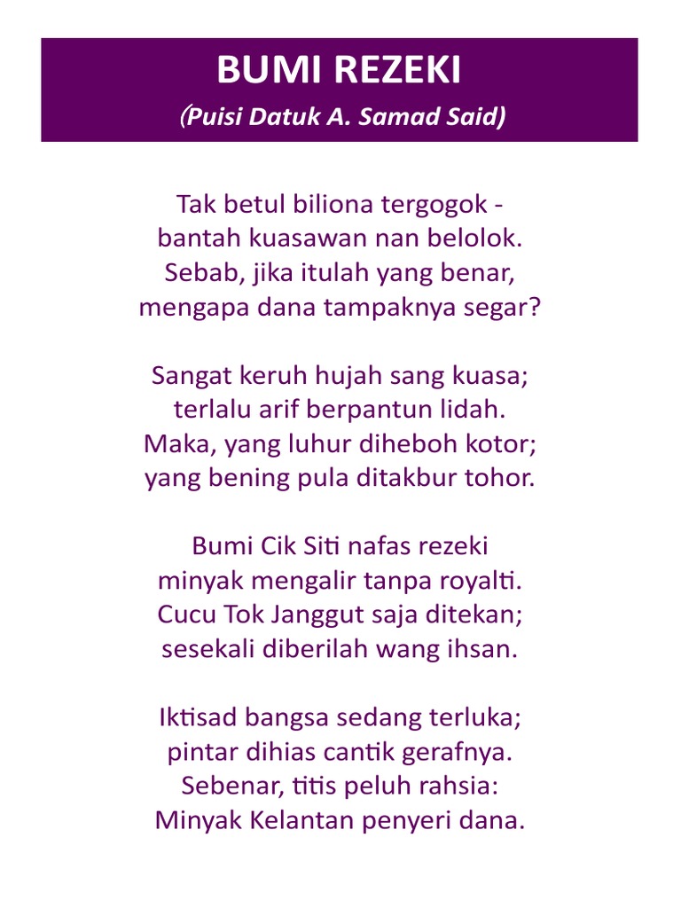 Samad said & az samad. Ada maksud tersurat lagi tersirat dalam yang mendalam pada puisi a. Klarifikasi puisi kontroversi sukmawati sukarno putri, puisi sudah dibuat sejak 2006. Abdul samad bin mohamed said (born 9 april 1935) is a malaysian novelist and poet. Tuan a samad said sy minat tetang puisi saya ingin bertanya macam mana kita ingin menulis puisi.
