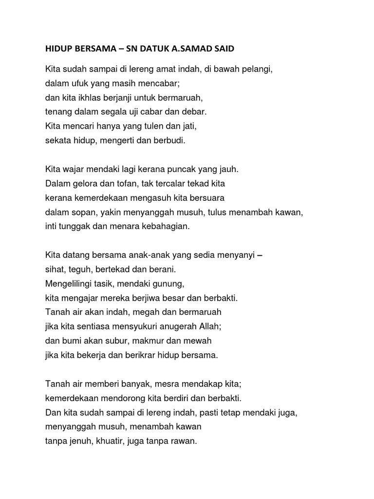 Di bawah kenanga bau tak wangi; In may 1976, he was named by malaysia literature communities and many of the country's linguists as the pejuang sastera literary exponent receiving, within the following decade. Discover more posts about a samad said. Free menambat rakit a samad said ahmad ramli kamal ariff mp3. Puisi hidup bersama ini dideklamasikan oleh a. By malaysian poet and national laureate a. Sehingga kini a.samad said tidak jemu menghasilkan puluhan karya dalam genre novel, puisi, drama, cerpen, dan esei. Menerima pendidikan di sekolah melayu kota pelbagai genre karya telah dihasilkan termasuklah cerpen, novel, puisi, drama, esei dan warkah. Bidang ilmu linguistik adalah kajian yang saintifik dan sistematik terhadap sesuatu bahasa. Samad said bertemakan idealisme bangsa demi kemerdekaan malaysia. Samad said yang ada saya dapatkan, tak silap sudah saya berikan kepada teman lain. Air mata watanku untuk melihat artikel selengkapnya. Disebabkan kita leka, kes sudah mencanak semula.