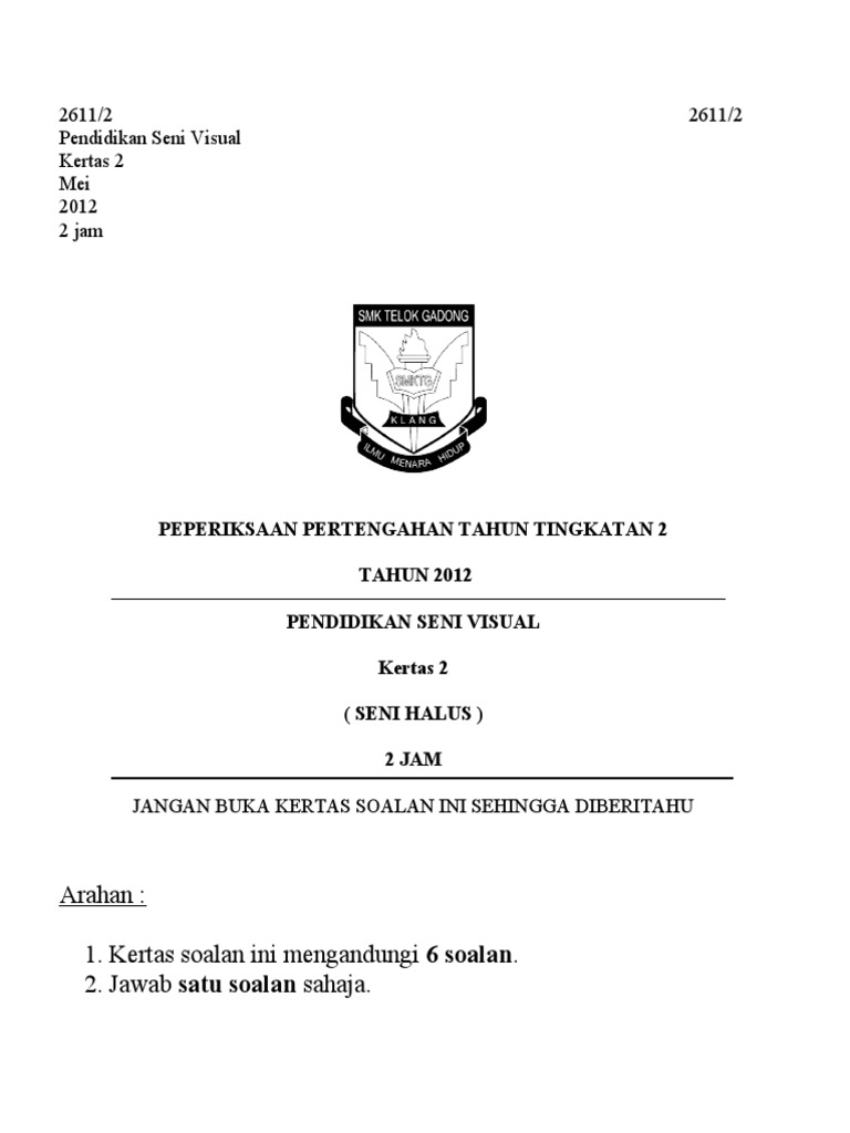 Soalan Seni Kertas 2 Spm 2015 - Bahasa melayu spm 2015 (kertas 1+ kertas 2).